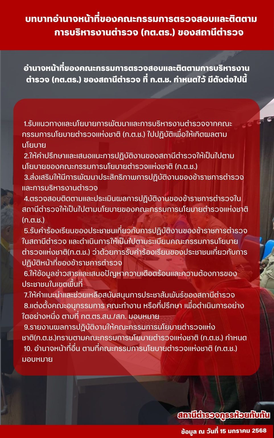 Home » O4 ข้อมูลคณะกรรมการตรวจสอบและติดตามการบริหารงานตำราจ (กต.ตร) ของสถานีตำรวจ